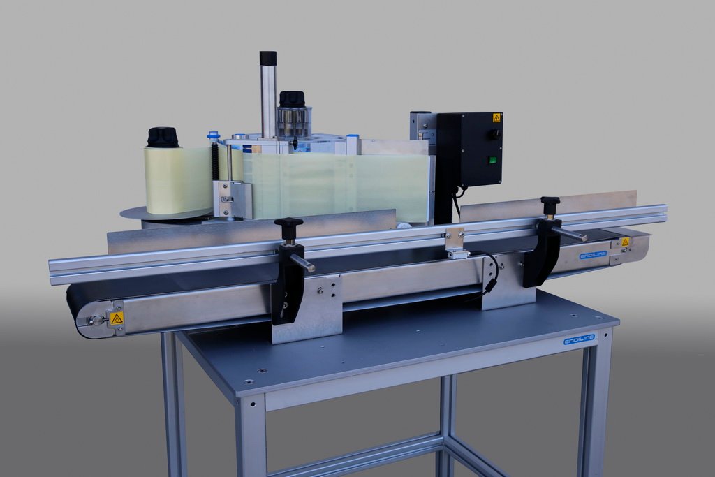 Výhodou zariadenia je jeho malá veľkosť a mobilita, čo umožňuje jeho jednoduché premiestnenie. Etiketovací stroj je veľmi jednoduchý na inštaláciu vedľa daného produktu, čím odpadá potreba zabezpečiť prepravu produktov. Podľa veľkosti produktu je možné vybrať rôznu šírku dopravného pásu na etiketovanie. Rýchlosť je možné nastaviť až do 40 m/min. Synchronizácia rýchlosti etiketovania a dopravného pásu je manuálna. Presné vedenie produktov je zabezpečené vodiacimi bočnicami.